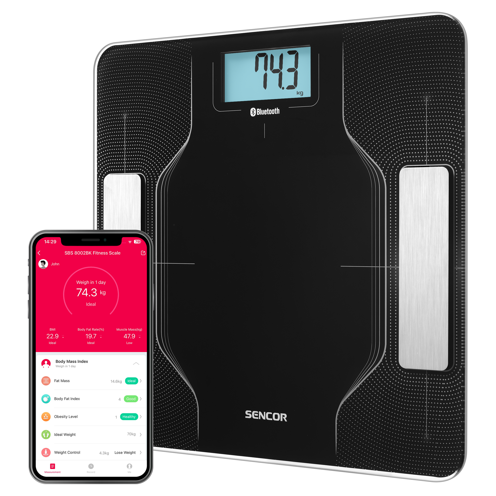 Design ultra fin (seulement 16 mm de hauteur). Surface en verre pour un nettoyage facile. Grand écran LCD (55 x 25 mm). Fonctions et propriétés. Verre de sécurité trempé (4 mm). Poids jusqu'à 5 kg.