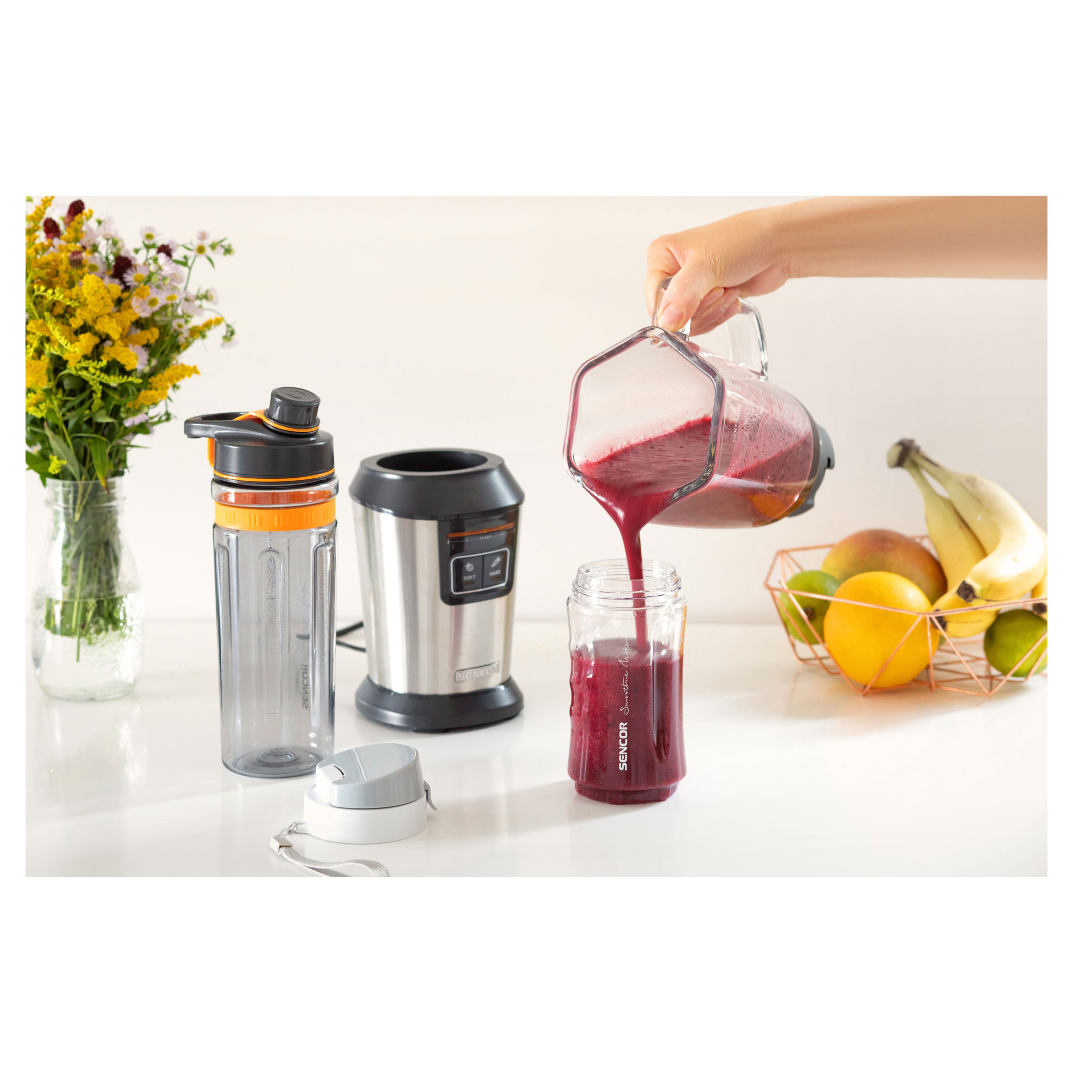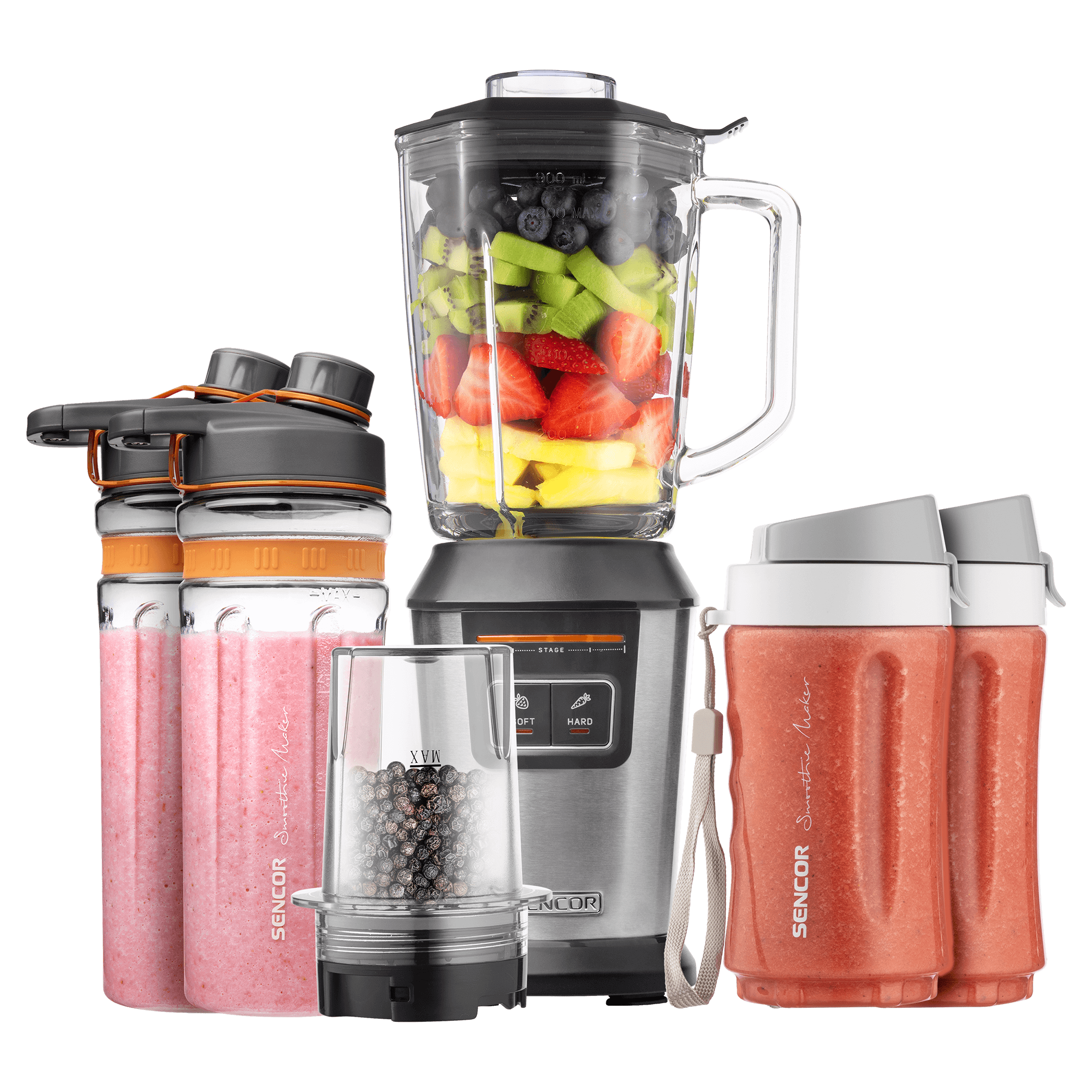 SOFT pour les cocktails légers (fruits / légumes de type fraises, tomates, etc.) et HARD (pour fruits/légumes de type ananas et carottes)