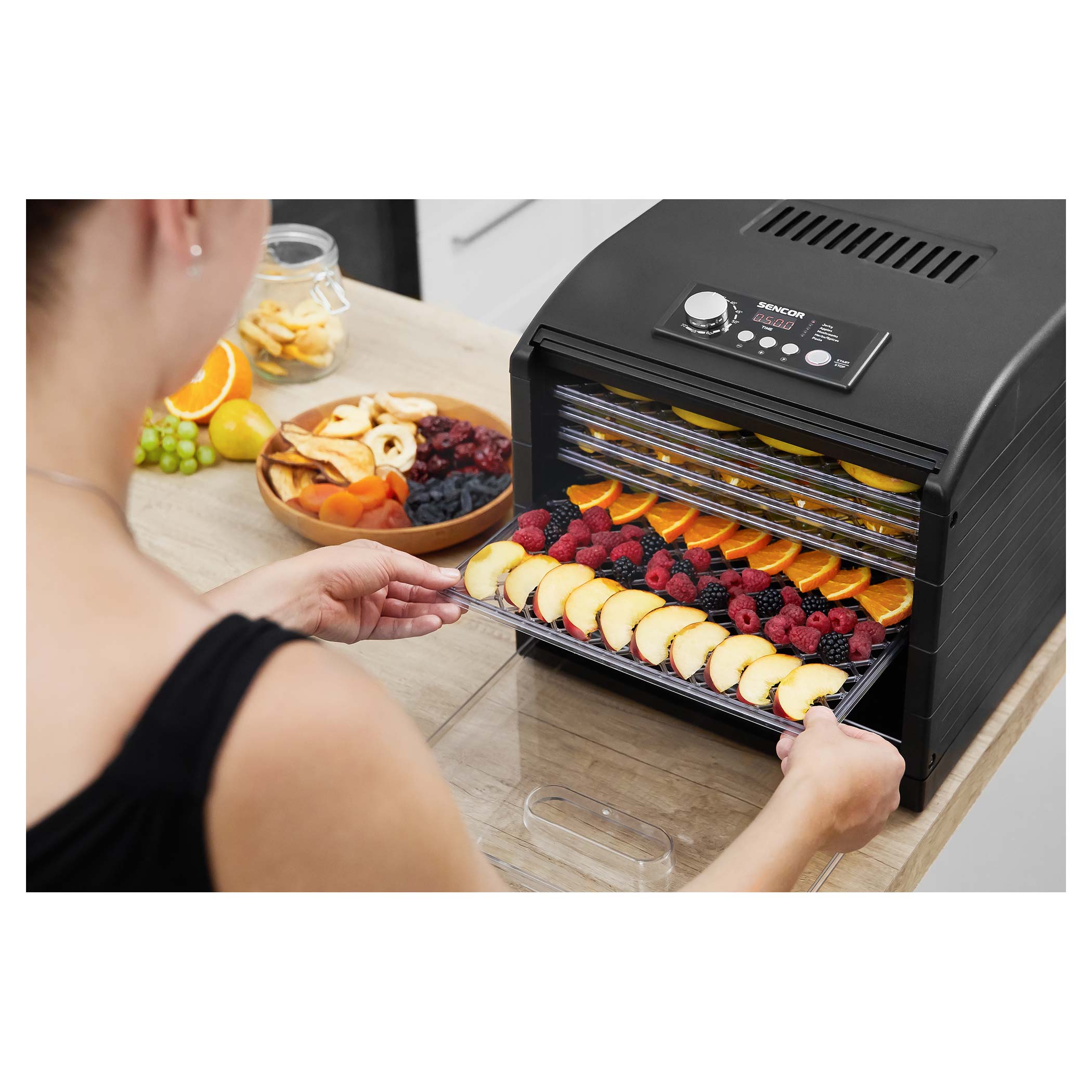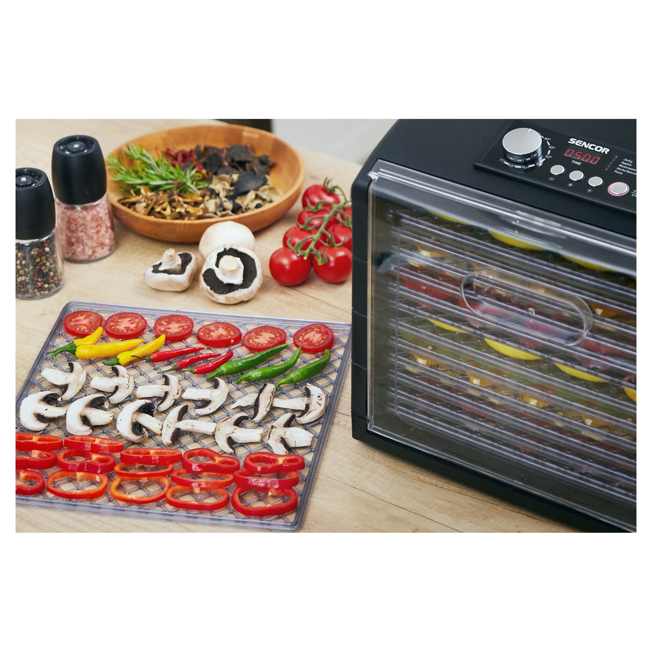 Couvercle et plateaux transparents pour vérifier le processus de déshydratation à tout instant