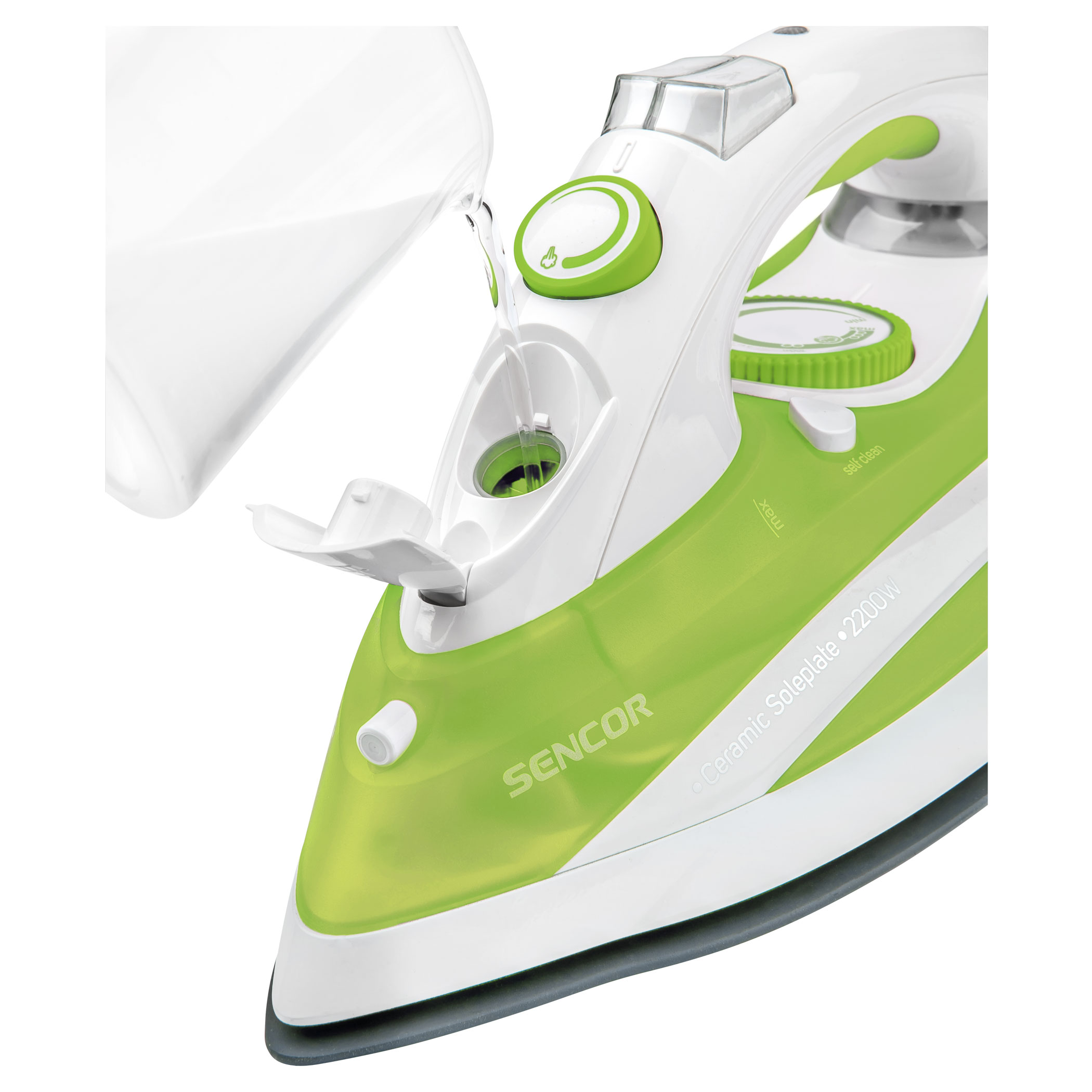 Puissance consommée 1 085 W, Semelle céramique, Facile à remplir le réservoir d´eau transparent.