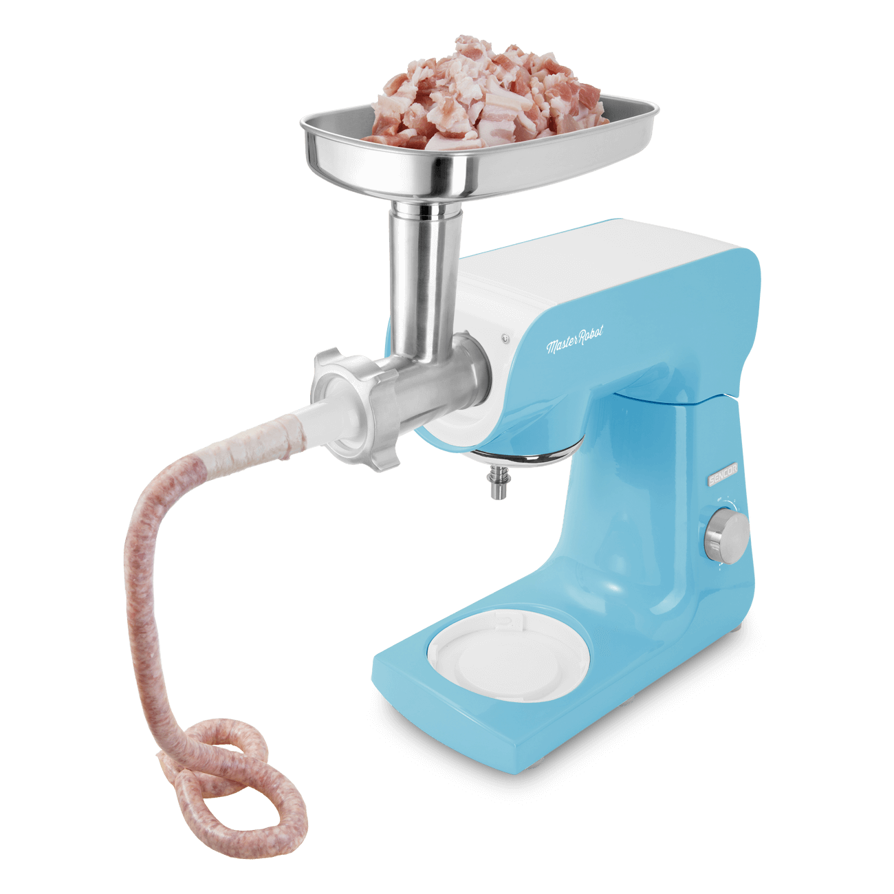This attachment makes it easy to prepare homemade kielbasa, bratwurst or other sausage-style food.