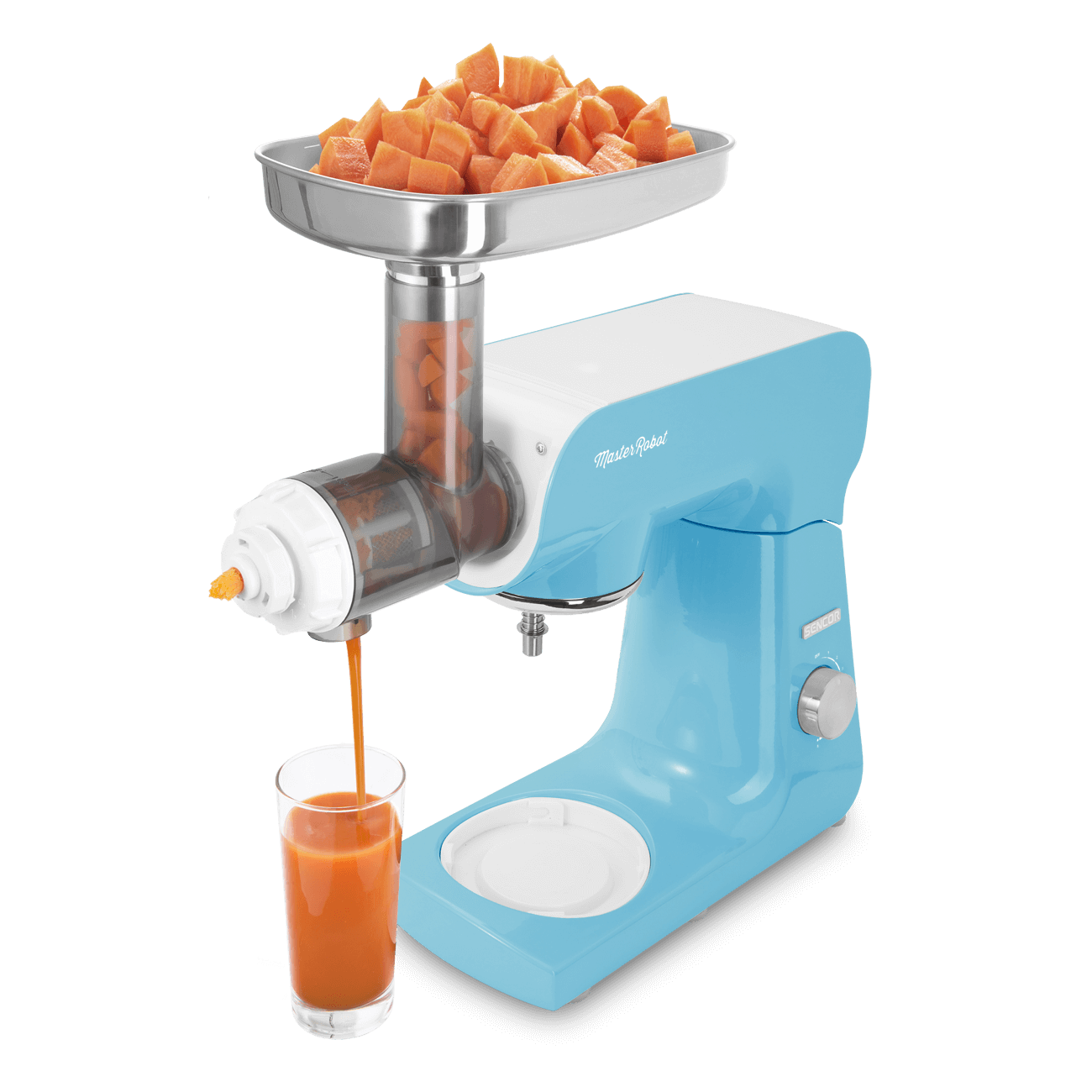 This juicer has a screw press to get the most out of your fruit or vegetables — the most juice, flavor and aroma. Fresh, healthy juice any time you want.