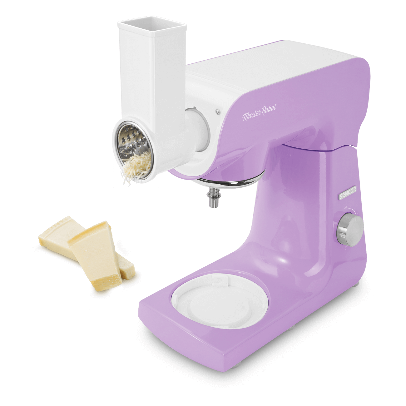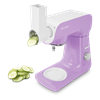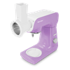 Slicer and grater with three interchangeable attachments for slicing, and coarse and fine grating. Makes it easy to prepare salads, potato chips, grated nuts and much more.