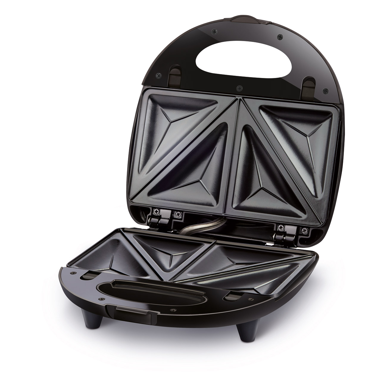 Prépare 4 sandwiches triangulaires, grille la viande ou les gaufres
